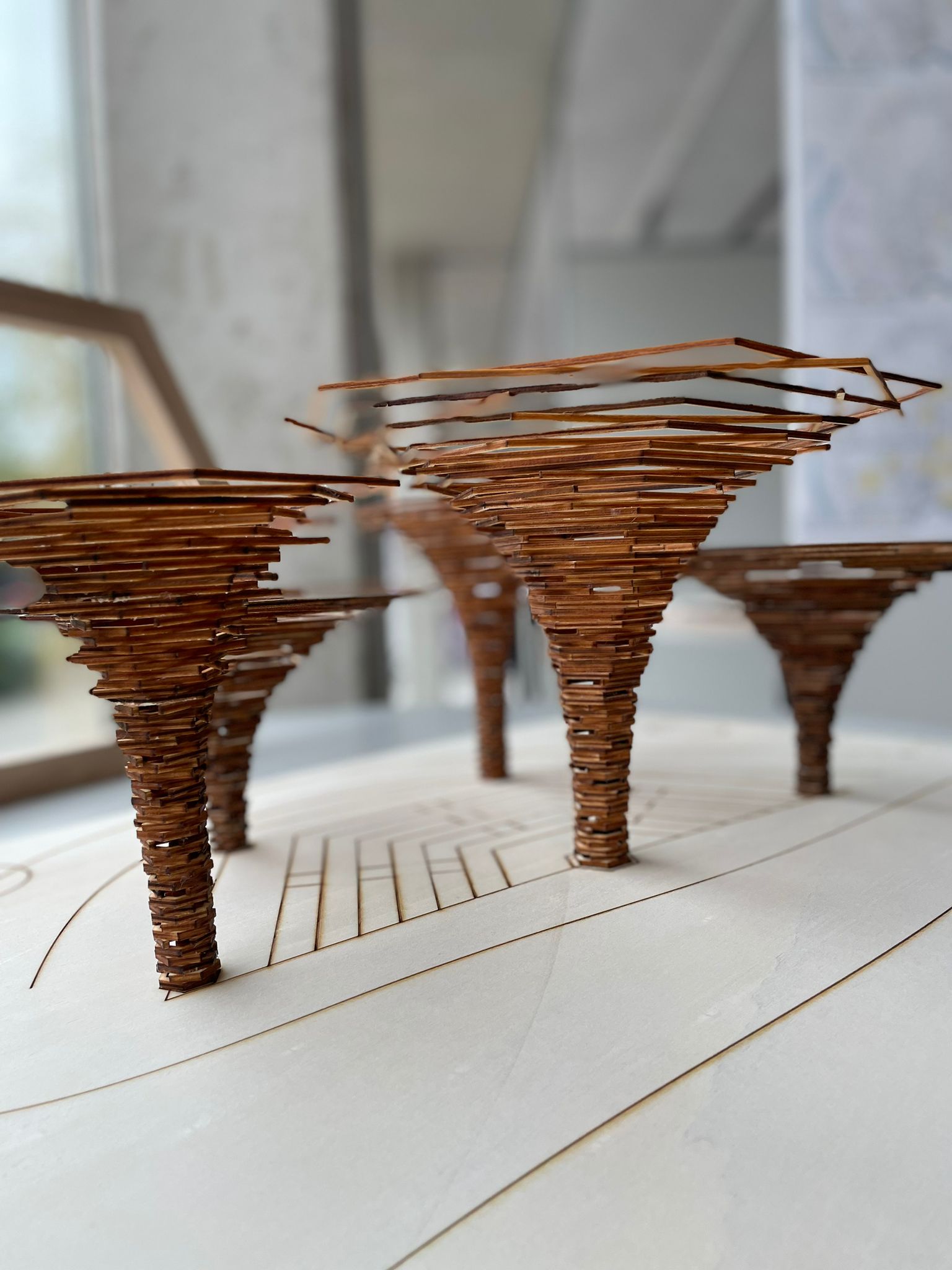 For the final jury, representatives from Friedwald Kalletal selected the top four (two third prices) pavilion designs, envisioning their potential for future realization as serene shelters to host visitors during farewell ceremonies.