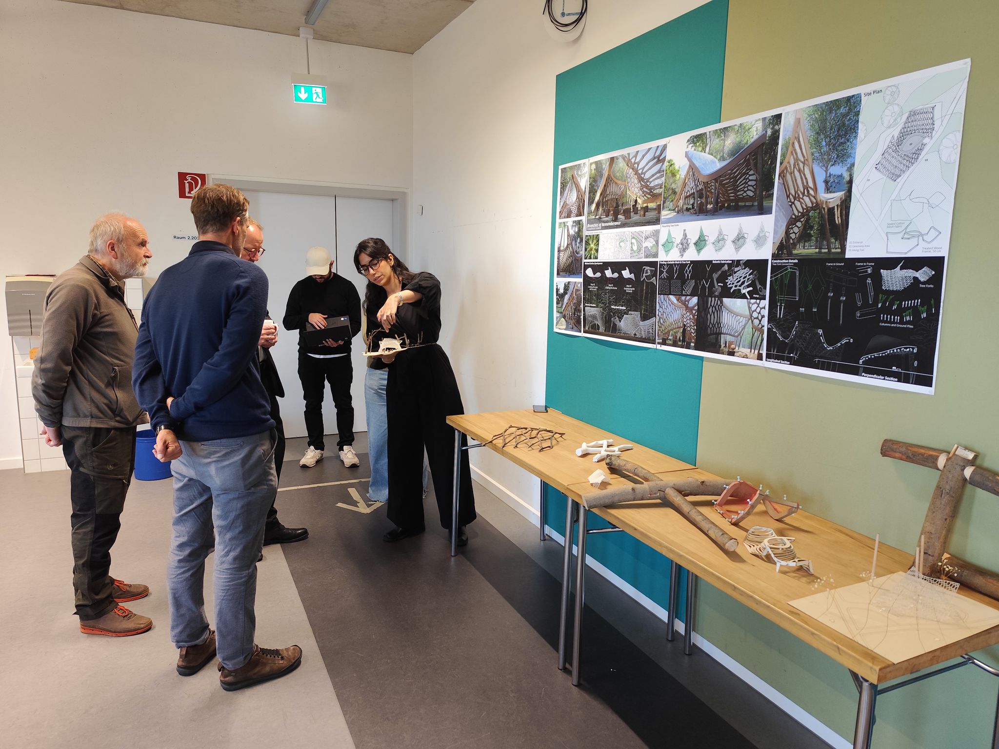 Mr. Düning-Gast and Mr. Homuth praised the students for their dedication and ingenuity. “The designs not only respect the ethos of the Friedwald concept but also push the boundaries of what is possible with regional wood,” said Prof. Hans Sachs and Álvaro Valderrama, who taught the module in the summer term 2024.