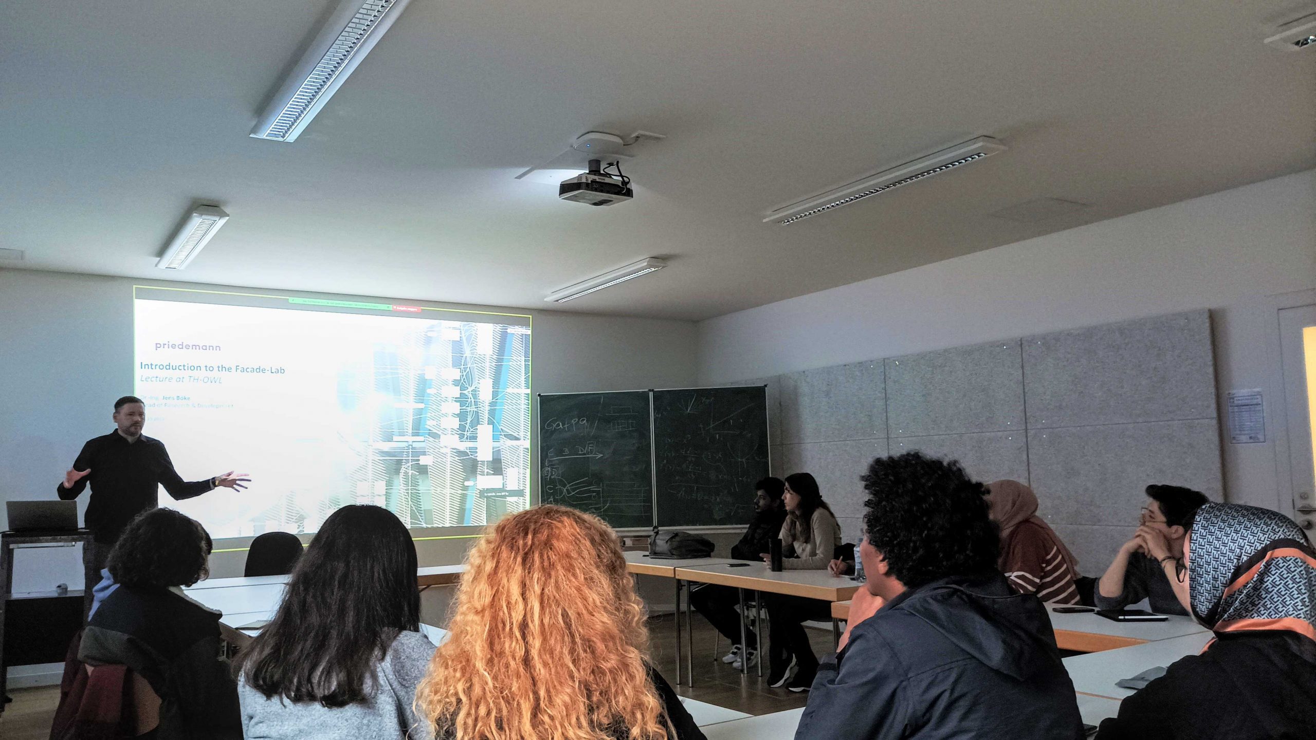 How can we innovate facades and associated technologies? Jens Böke, Head of Research & Development at Priedemann, addressed this question in his lecture in a Master of Integrated Design (MID) course. During his presentation on October 26th 2023, he gave a brief introduction to the Priedemann Facade-Lab and an overview of ongoing and completed R&D projects. “It was an inspiring exchange with vivid discussions.”