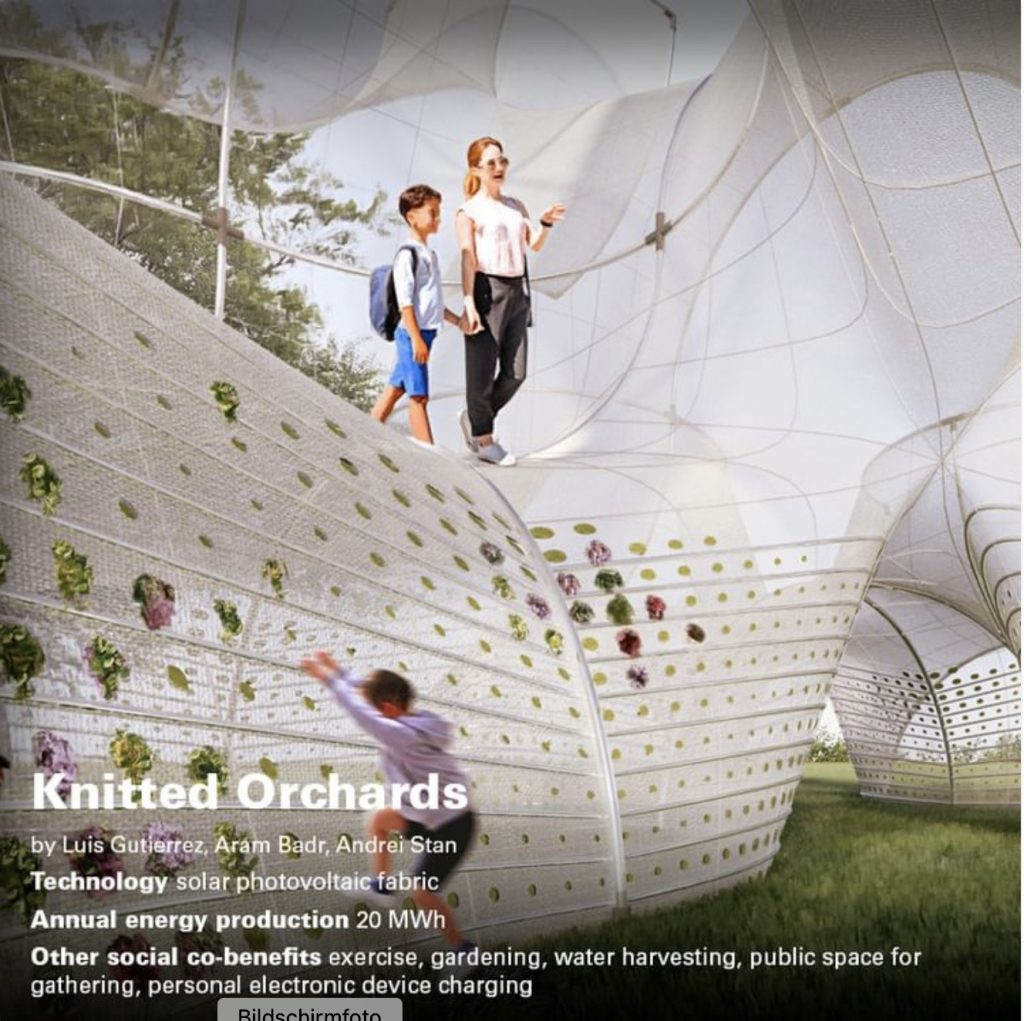 Applied Sciences and Arts Ostwestfalen-Lippe have been published online and in the 2022 LAGI book. The projects are “treEcoTopia” by the Interior Architecture students Hannah Hammer, Gautham Thampy, Mareike Schulte, Louisa Fiedler, and Lea Seibel with Prof. Dr. Markus Schein, “Room to Breathe” by MID students Tom Esdar, Maximilian Bohnhorst, and Hamed Samara as well as the project “Knitted Orchards” by the MID students Luis Gutierrez, Aram Badr, and Andrei Stan.