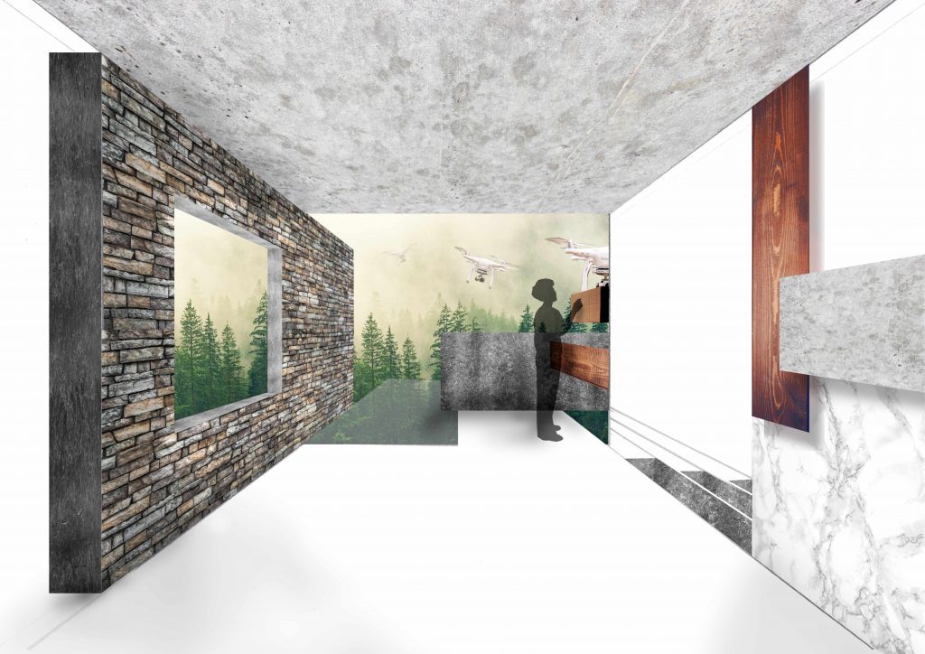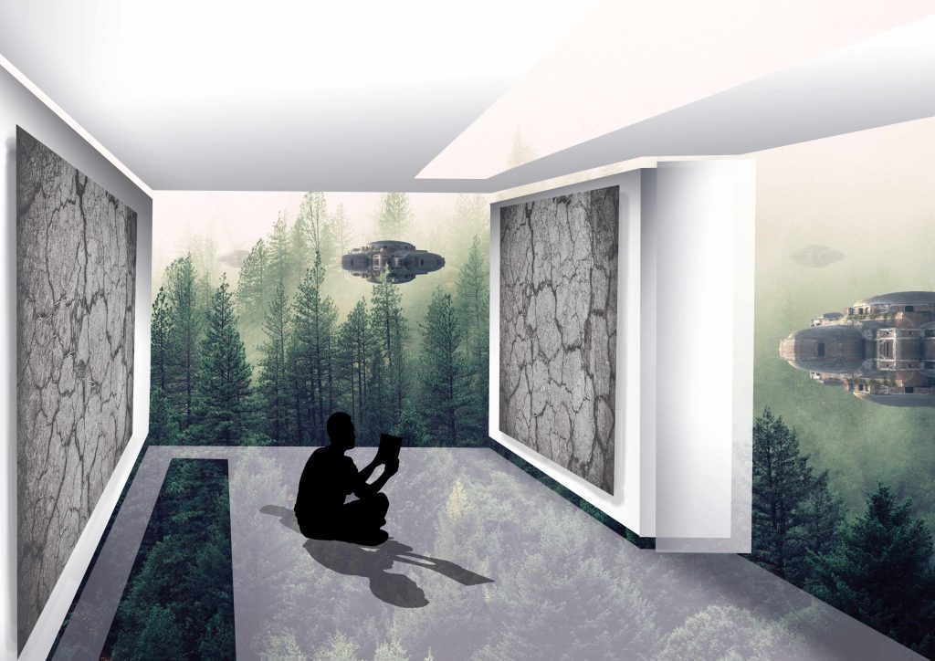 With the aid of Gimp, Adobe Photoshop or Affinity Photo, the students create a visual collage of a fictional architectural concept. They develop the perspective of a room, inspired by several science fiction movies, using both self-taken and researched photographs.