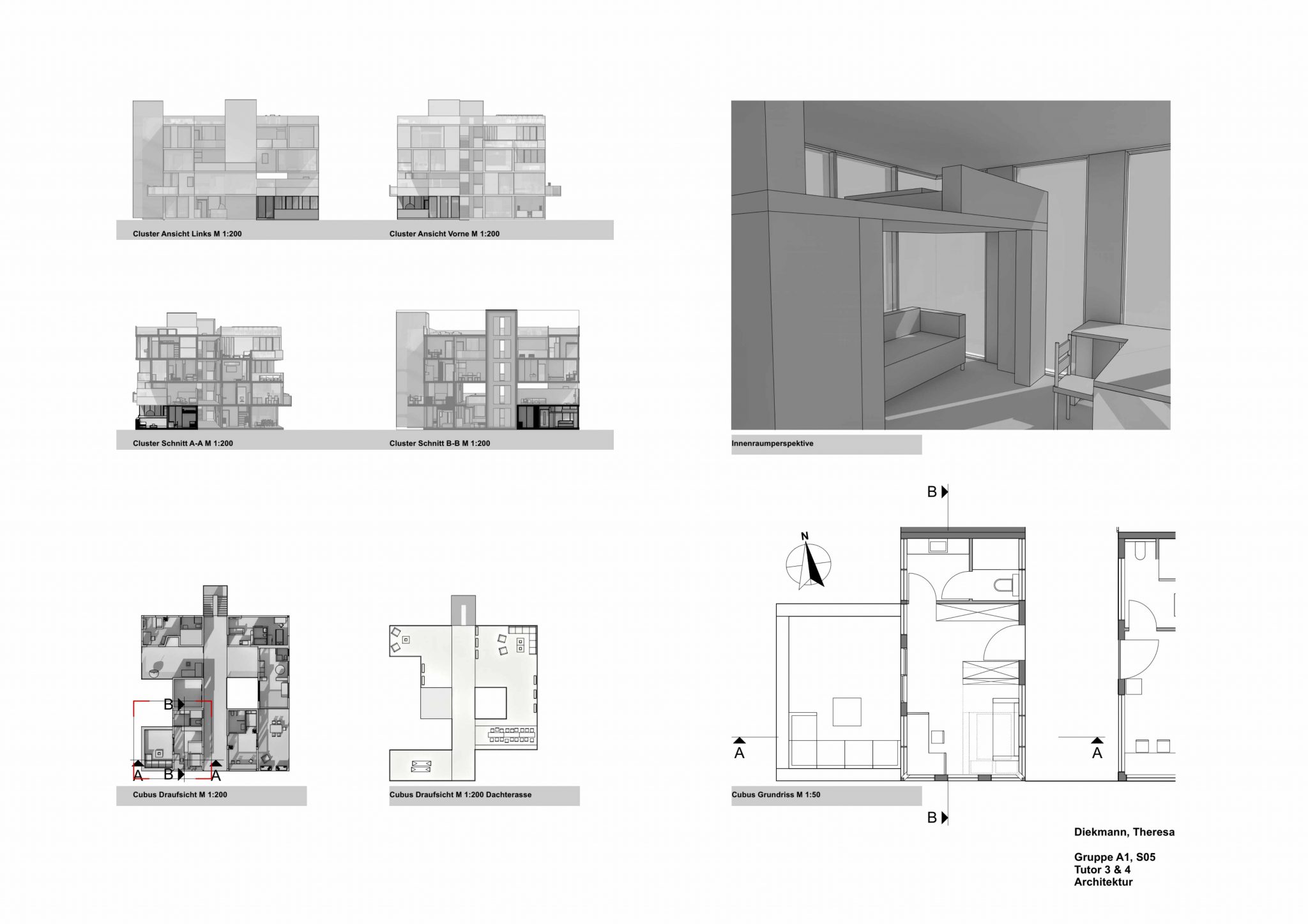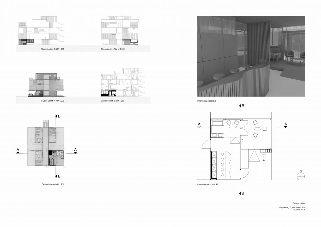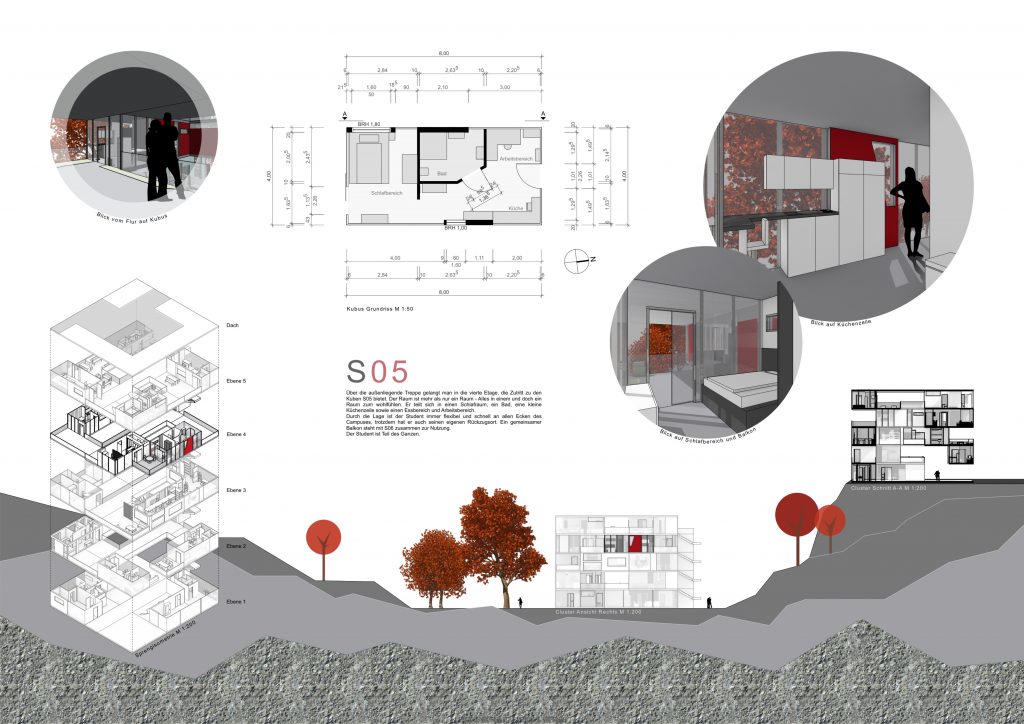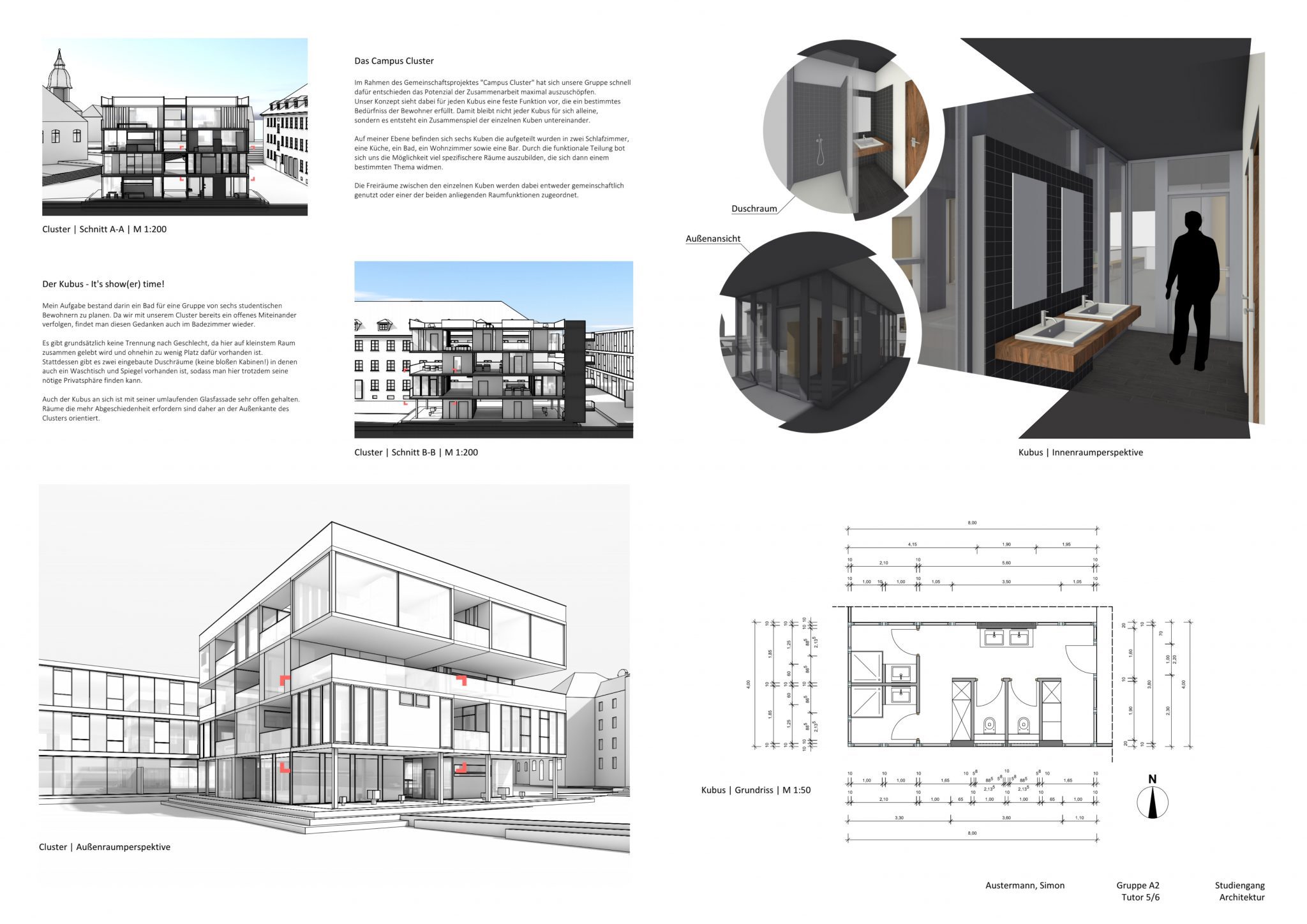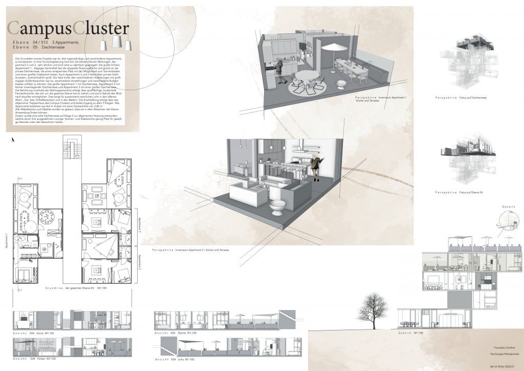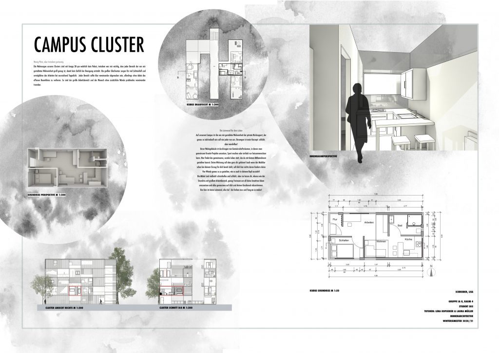 The students collaborate to develop a microarchitecture as a “Campus Cluster”, primarily working in 3D modelling. They generate views, perspectives, sections, and more from their models.