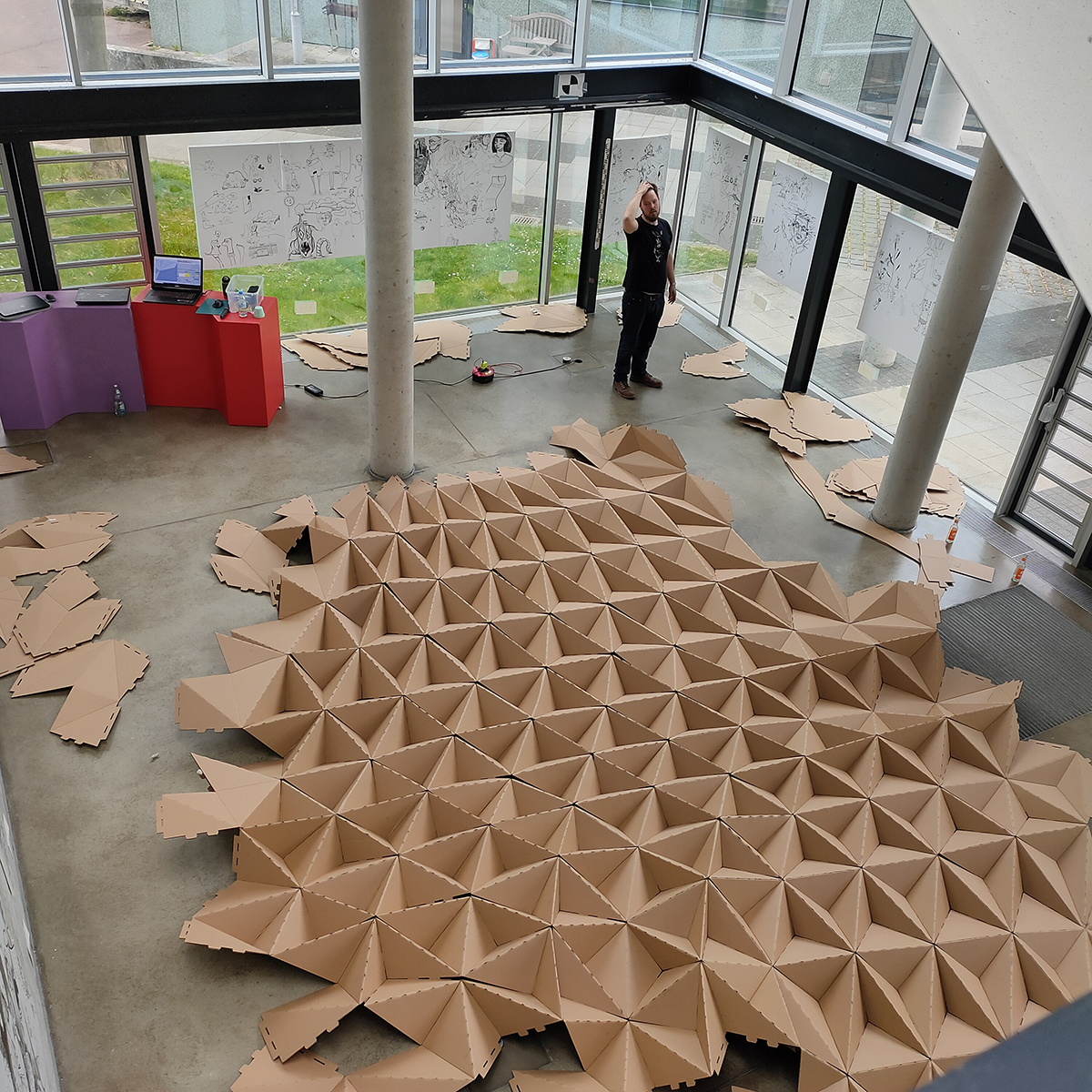 As a result, it is now crucial to evaluate whether the fundamental logic of our generator could be applied successfully to a smaller pavilion and/or used with other materials like sheet metal. Despite the setback, we remain optimistic about the potential of corrugated cardboard and continue to explore ways of harnessing its unique properties for innovative design applications.