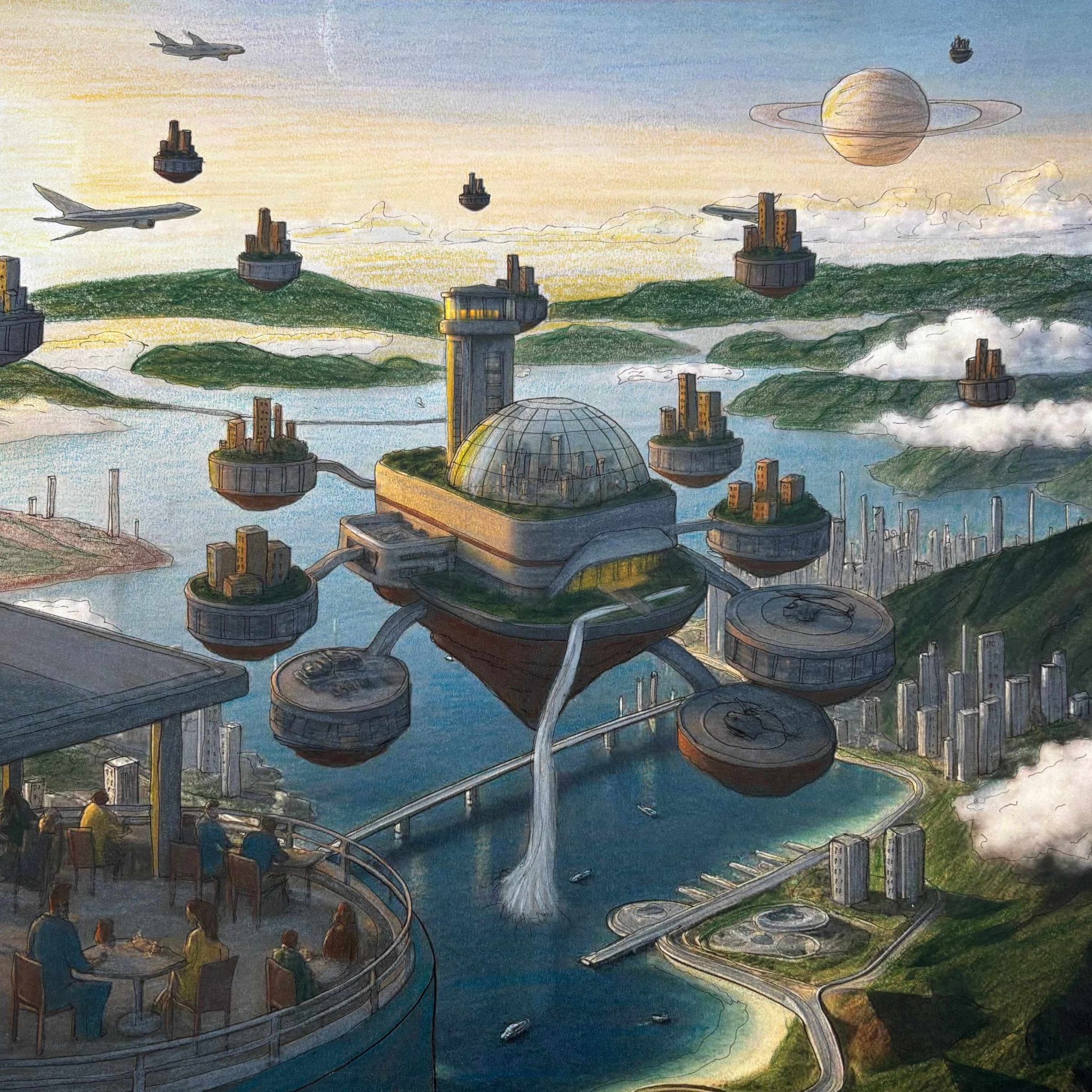 The second tasks aims to transform the 3D-modelled object from task 1 into an imaginative architecture, altering the object into a floating city. The emphasis is on visualising the floating city and it´s surroundings, using generative AI (Comfy UI + Flux) and other digital tools as well as analogue tools, such as hand-drawn sketches.