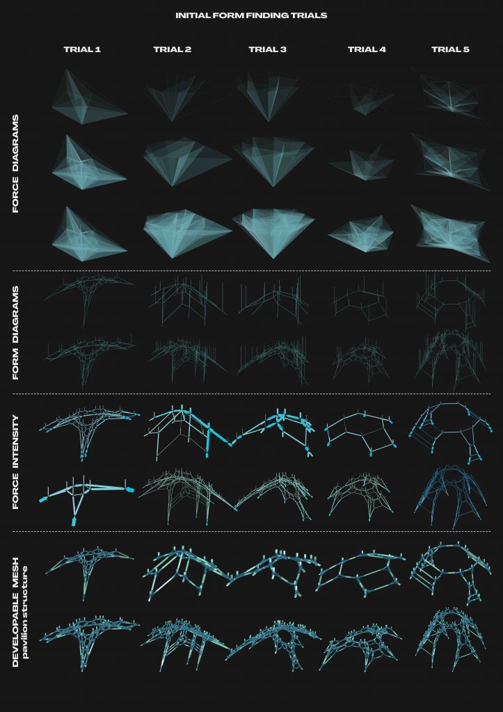 The project emphasized the potentials of regionally sourced wood to create innovative structures. The material should inspire new methods of connection, assembly, and responsive design properties, ultimately influencing the pavilion‘s form and design.