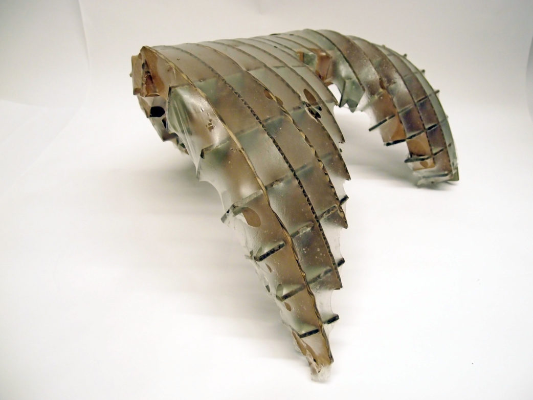 The rigid, recycled paper forms a support structure while the supple, translucent bio-plastic becomes the second skin. In the combination of the materials they benefit from the properties of the other.