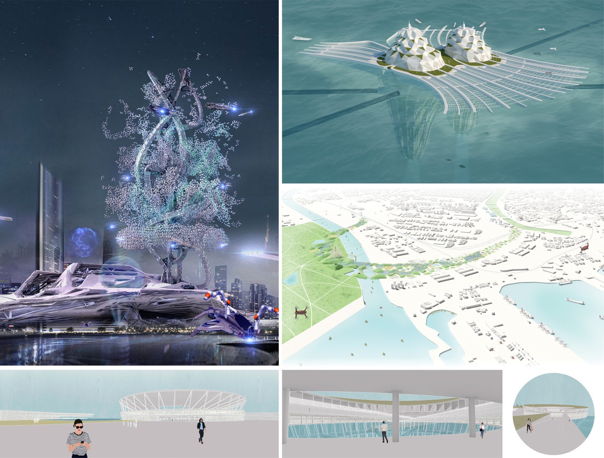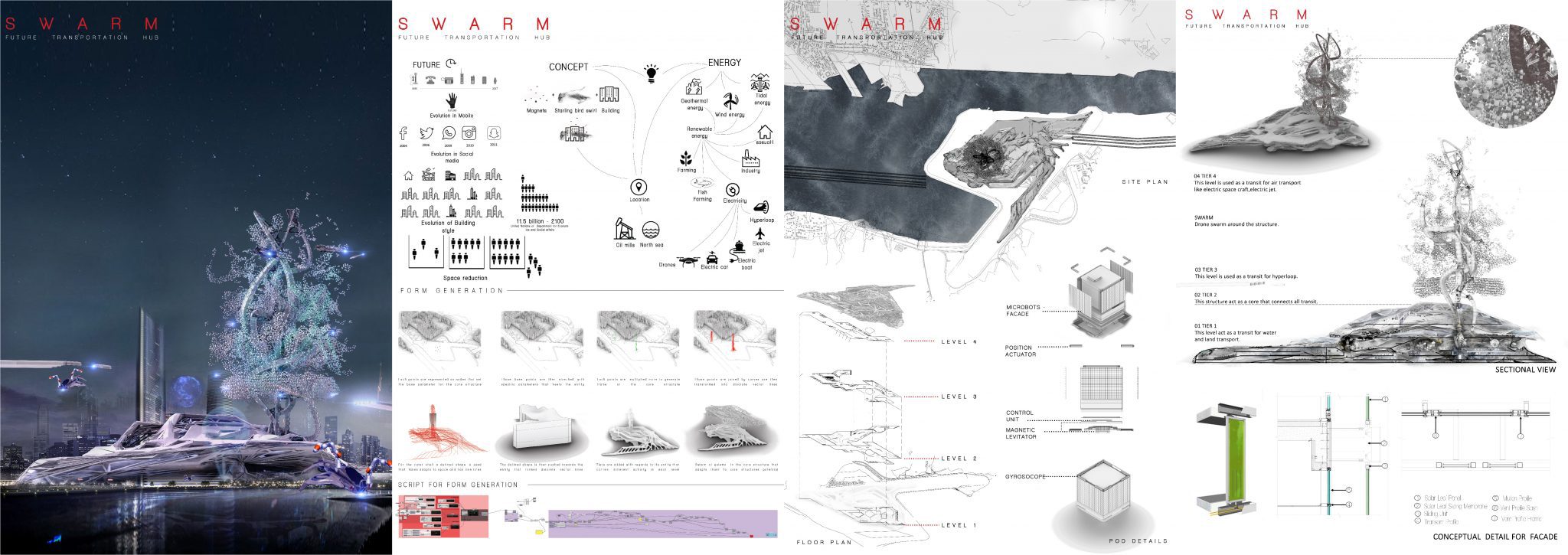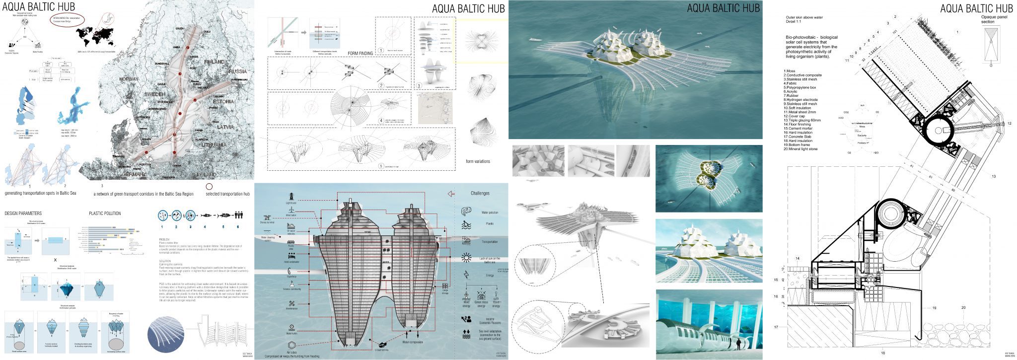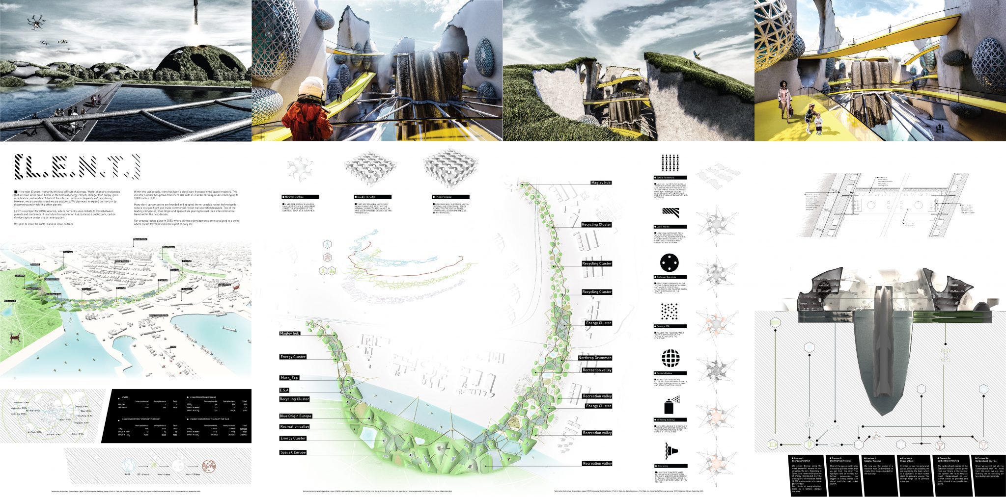 The goal of project Hyper Hub was to re-activate the idea of alternative traveling through new, arising technologies, such as hyperloop, drones, electric vehicles and magnetic rail-ways in Europe, which finds itself today in both, a socio-economic but also a deepening global environmental crisis. In interdisciplinary teams of two students, an architectural vision was developed. The goal was to integrate the above-mentioned technologies in the development of a ‚hypernode‘, a central transportation hub in a selected metropolitan area in Europe. The architectural design proposal aims for a functional building connecting various transportation technologies being a central meeting, communication and living hub for connected citizens and travelers. The proposed solutions varied from E-gas fueled rockets, swarm behavior controlled robots to hyperloop systems that could supply Africa with clean water.