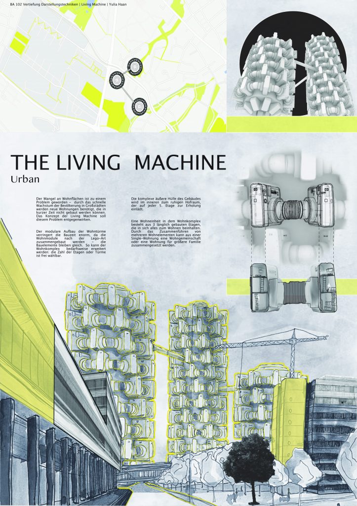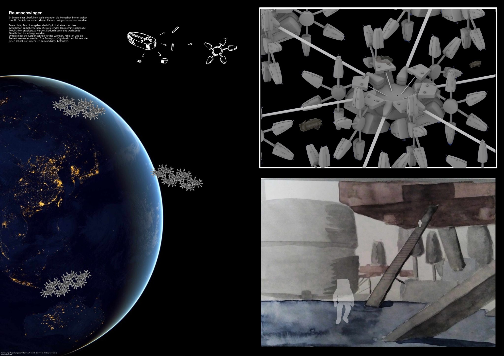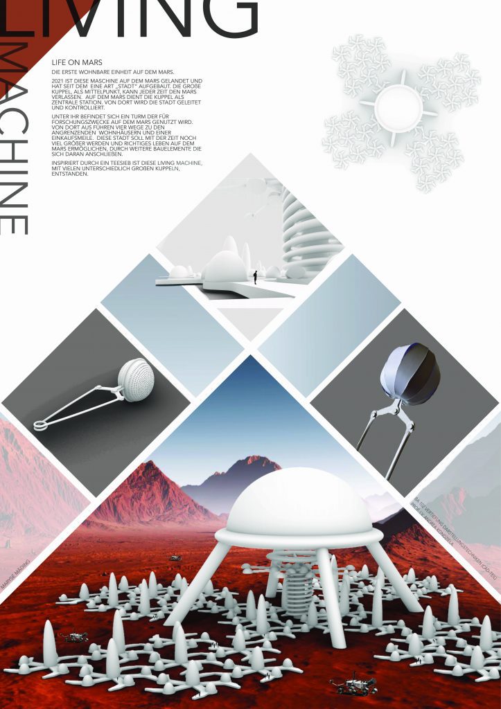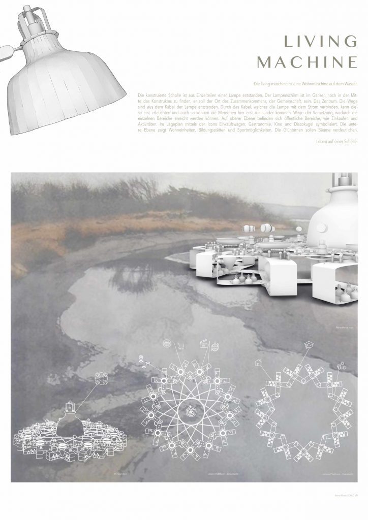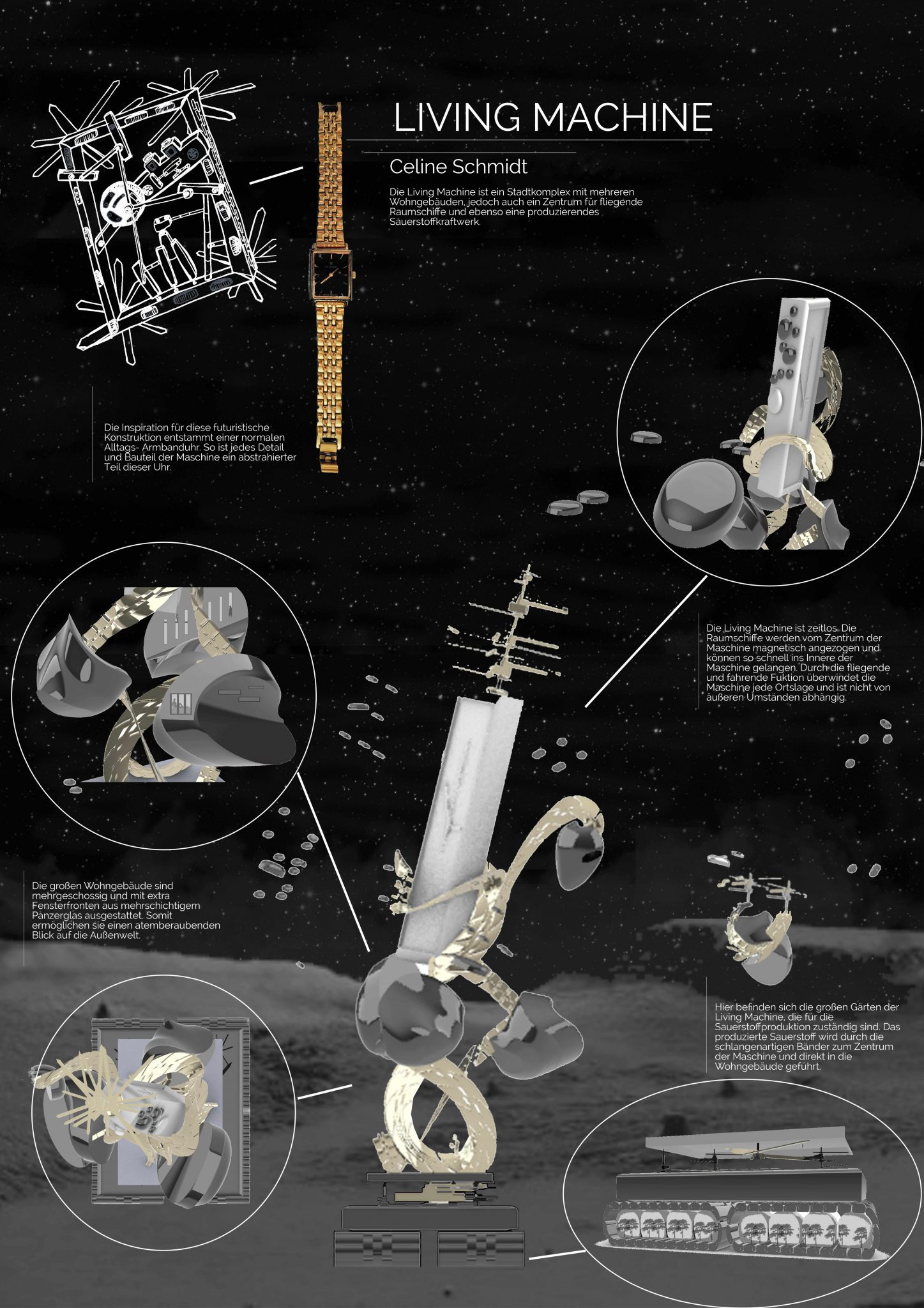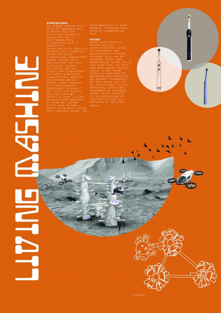 The second tasks aims to transform the 3D-modelled object from task 1 into an imaginative architecture, altering the object into a “living machine”.