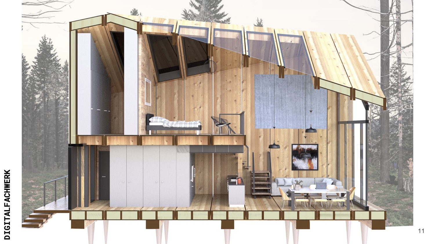 The central objective of NABITAT was to intertwine nature-inspired and culturally driven design strategies with new technologies, crafting a comprehensive concept for a micro building. This structure was designed to provide essential resources and infrastructure for part-time living, with minimal environmental impact.