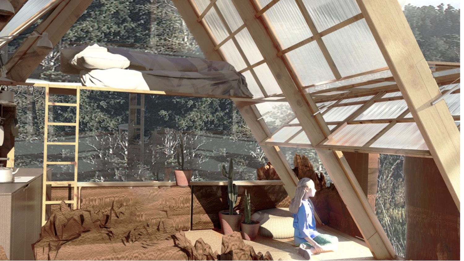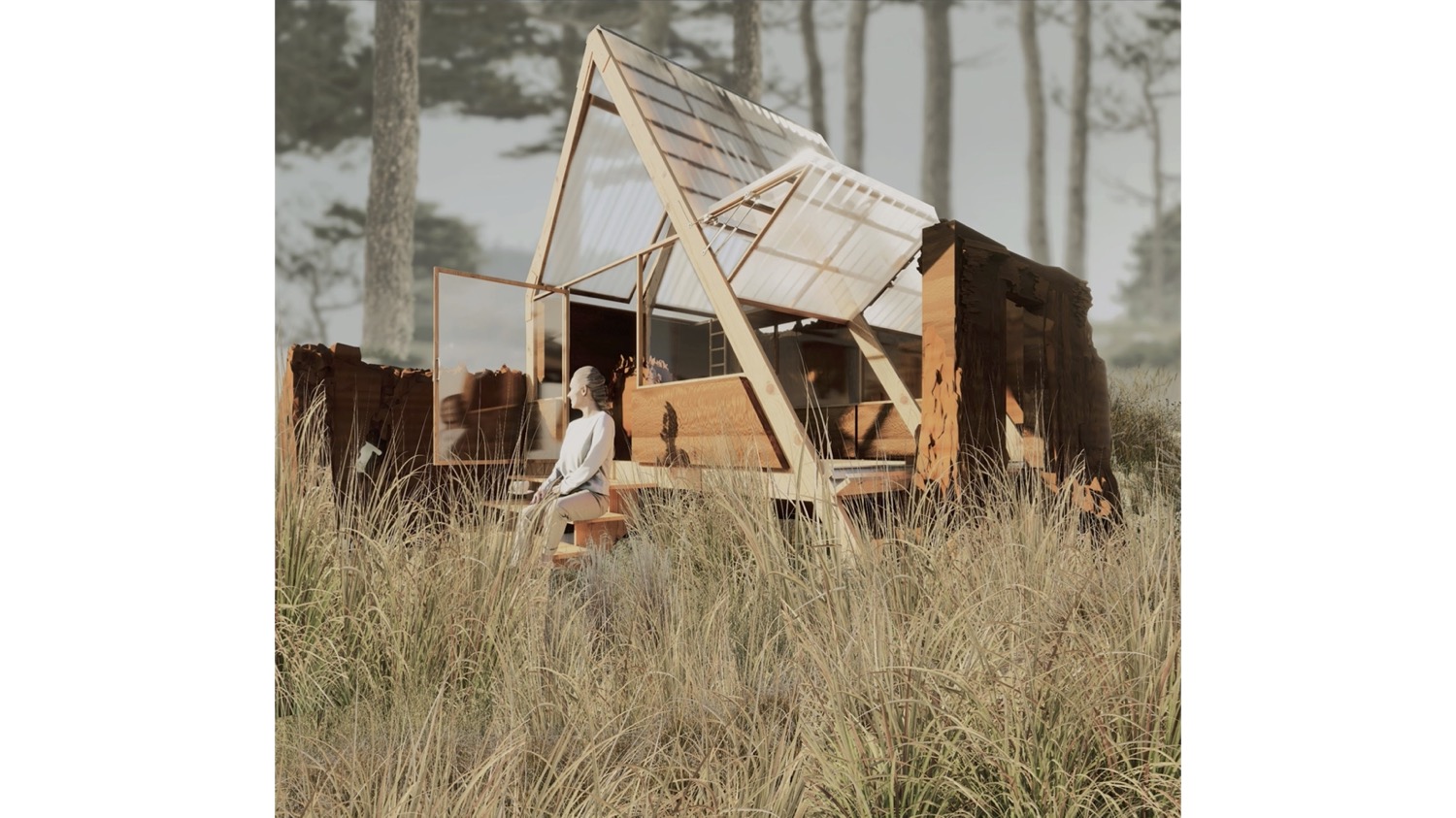A key aspect of the project was its commitment to sustainability. The micro architecture integrated minimal equipment necessary for healthy, temporary living, ensuring a low carbon footprint both during construction and operation. Emphasis was placed on using natural and circular materials, ideally sourced from or near the site, to blend seamlessly into the surroundings while adhering to circularity standards.