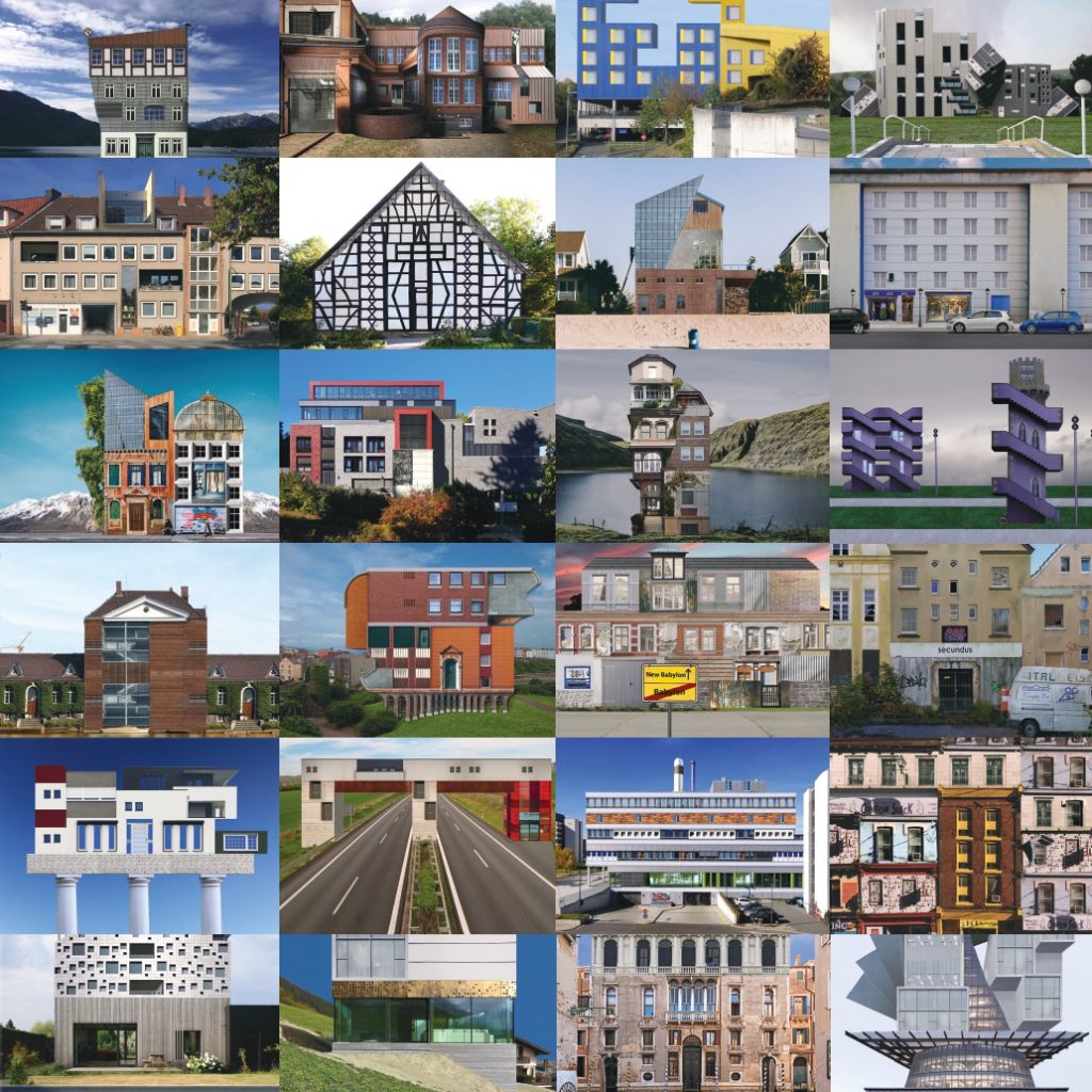The focus of this task was to teach fundamental functions of image editing software and to ensure a perspective- and geometry-accurate representation of the assembled “image pieces.” Additionally, when developing the building collage, students were encouraged to use as few different building materials as possible while ensuring harmony in color tones, materiality, surface texture, and cast shadows.