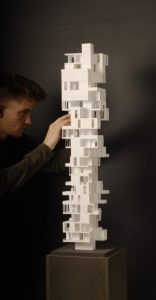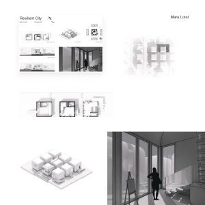 The projects Resilient City and Shared Towers explore self-organizing architecture, inspired by medieval city growth and informal settlements. They draw from New Babylon by Constant Nieuwenhuys, envisioning a future city where labor is automated, and life revolves around creativity and play.