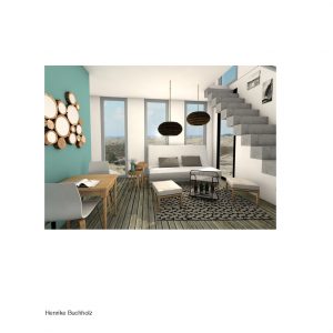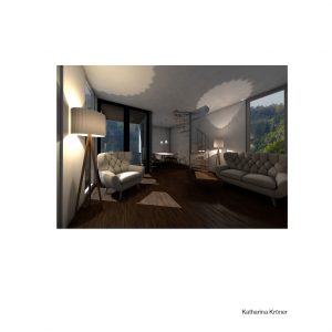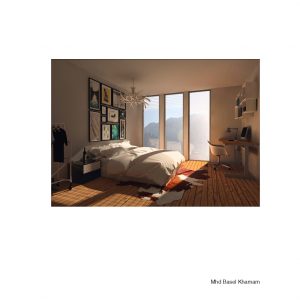 The task involved designing an interior scene based on their atelier floor or imported building, incorporating appropriate furniture, textures, lighting, and refined spatial details (e.g., shadow gaps). Students determined suitable camera angles and adjusted lighting and material settings to enhance realism. The final renderings were required to be in DIN A3 format with a resolution of at least 300 dpi.