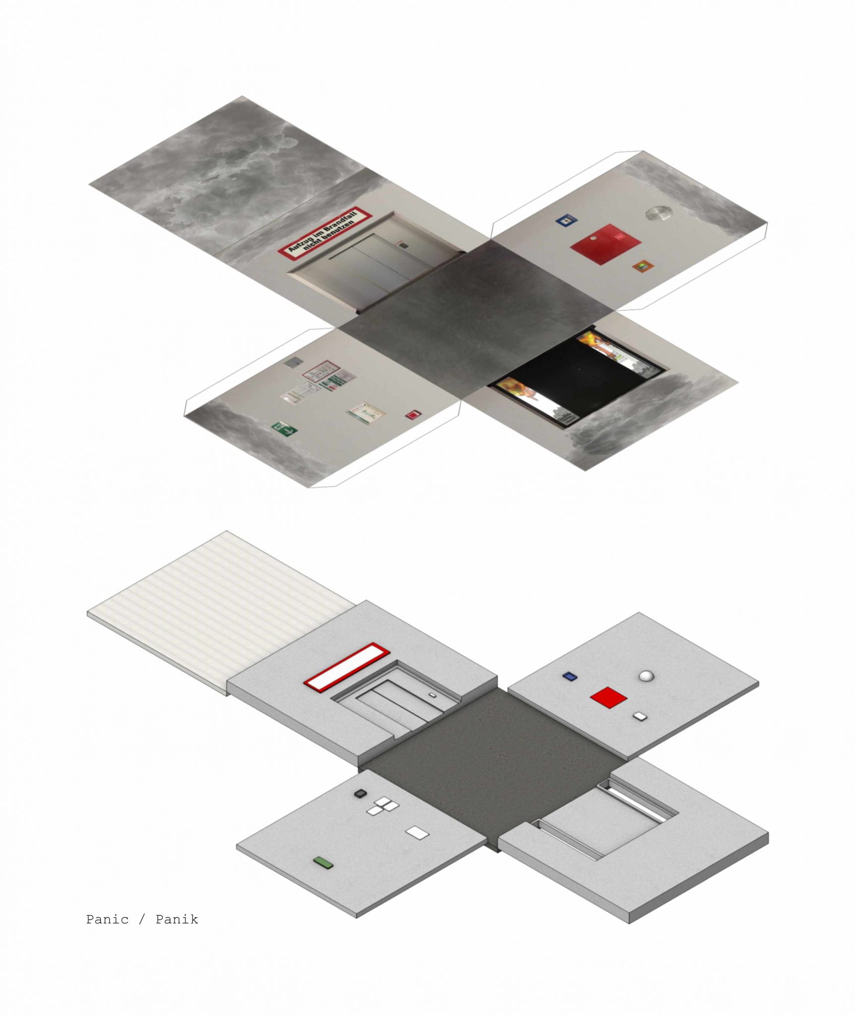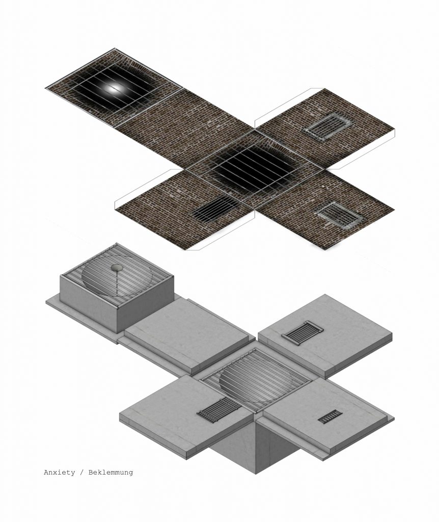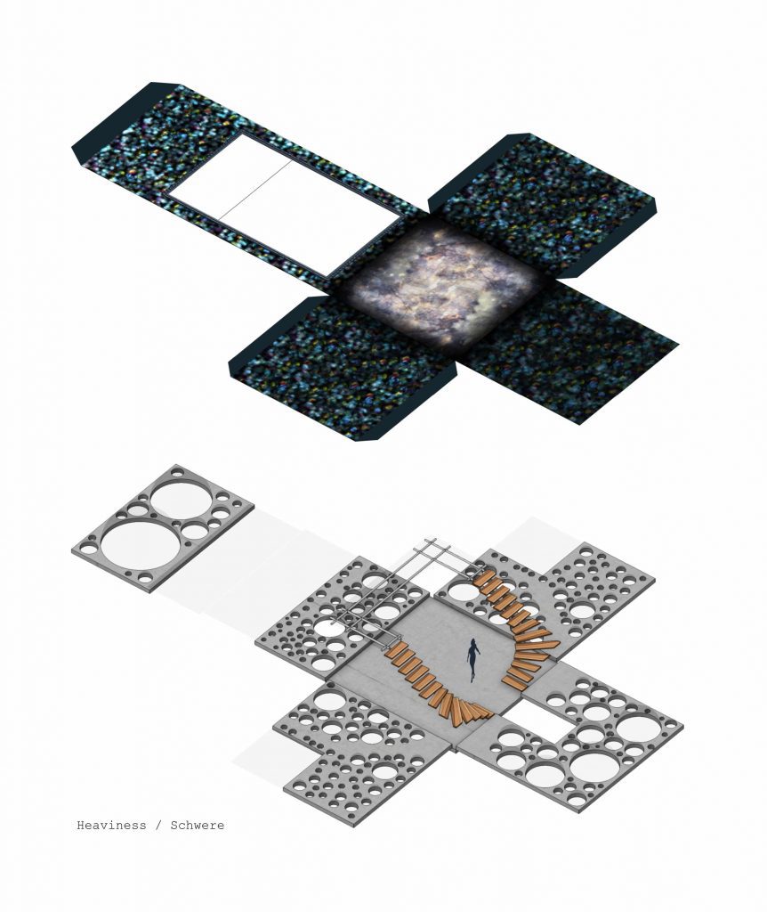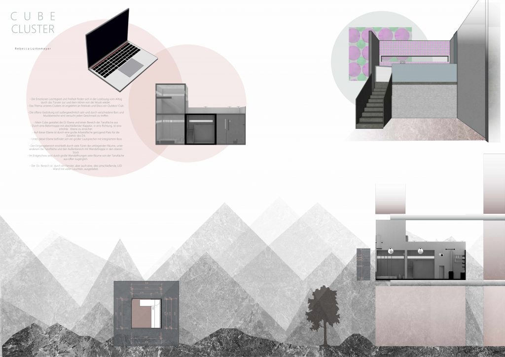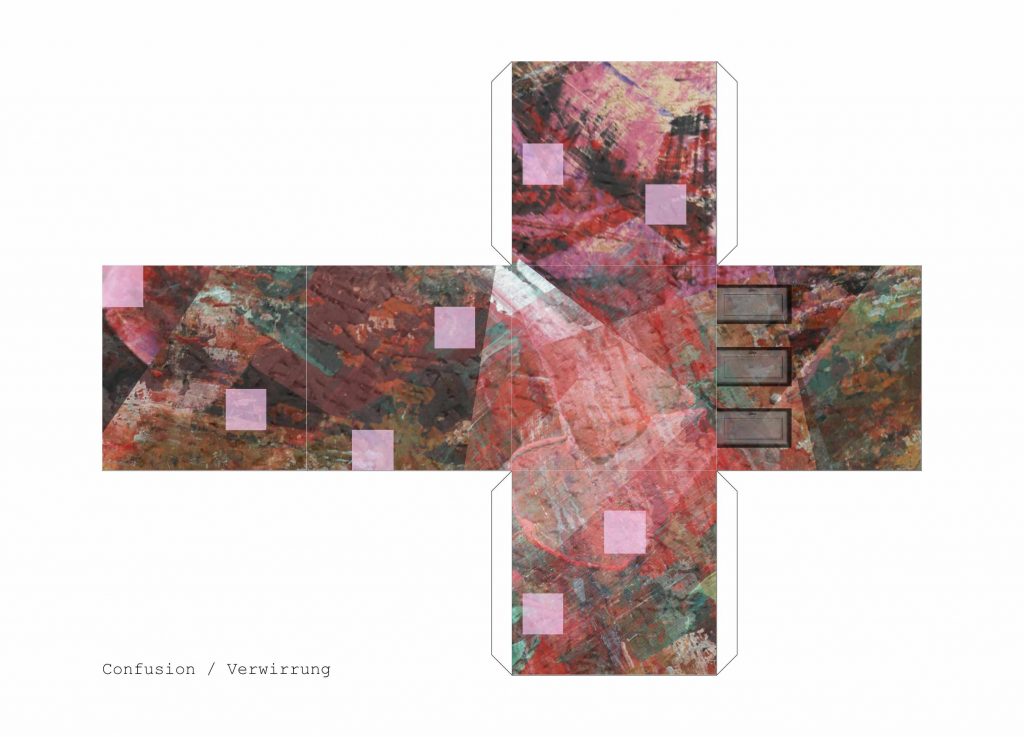 With the aid of Gimp, Adobe Photoshop or Affinity Photo, the students create a visual collage of a fictional architectural concept. They develop the interior view of a small cube based on a certain emotion using both self-taken and researched photographs.