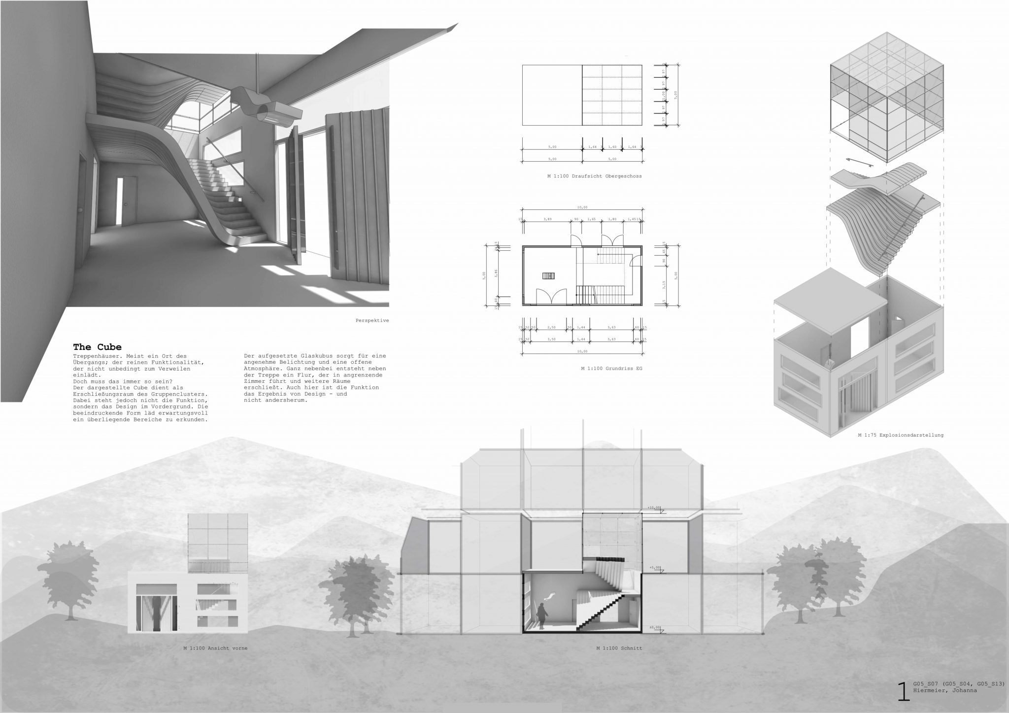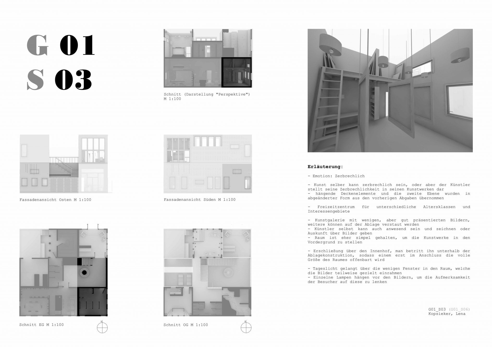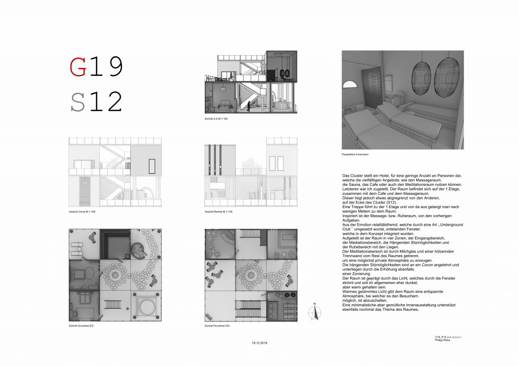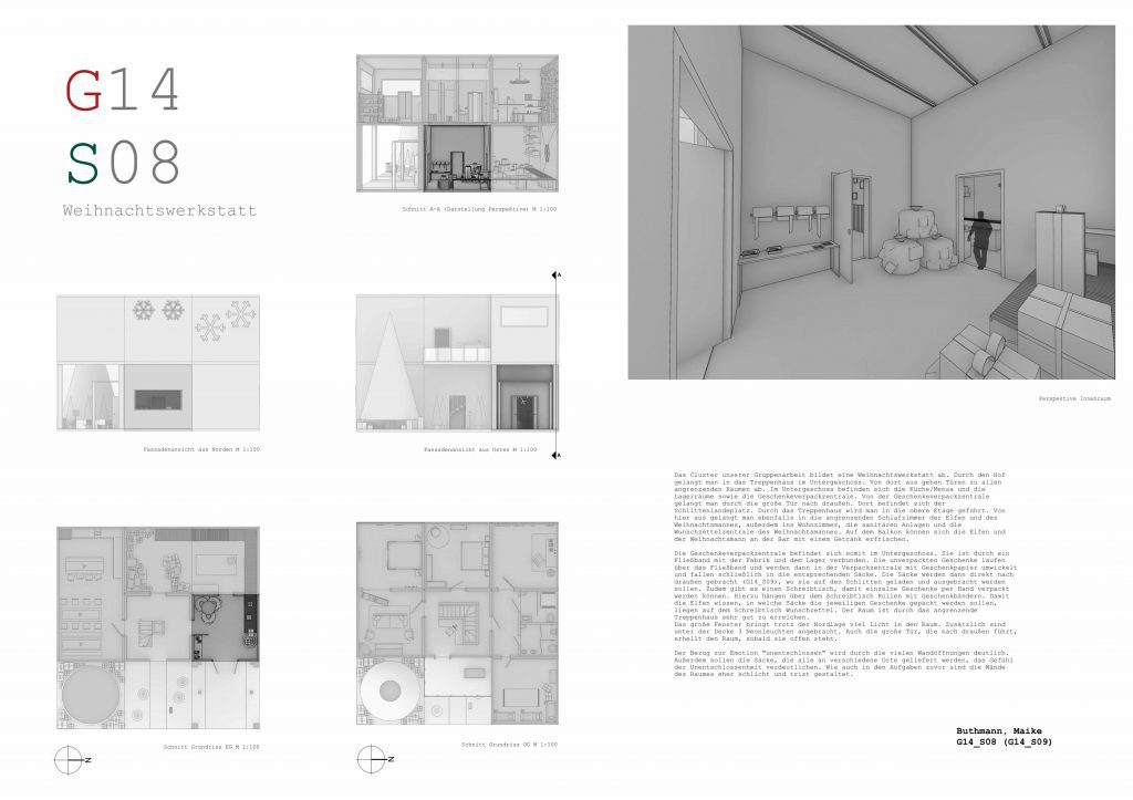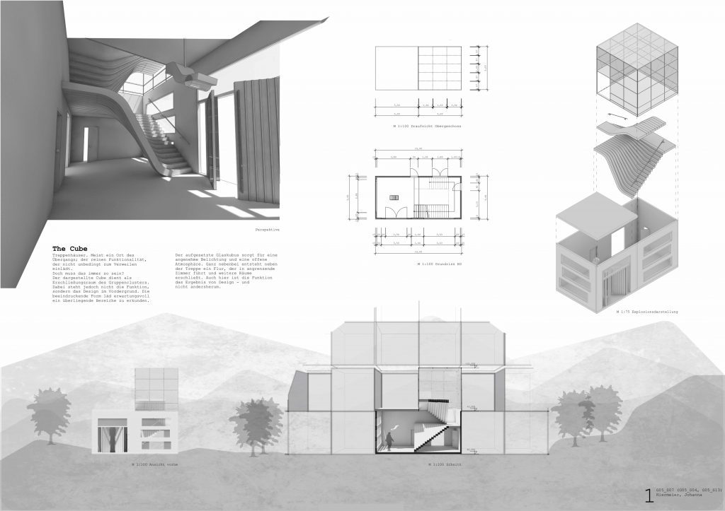Lastly the students are tasked to transform their 3D-models into a comprehensive architectural design plan. Thus the students can explore how to visually convey their design, using various 2D representations such as sections and elevations.