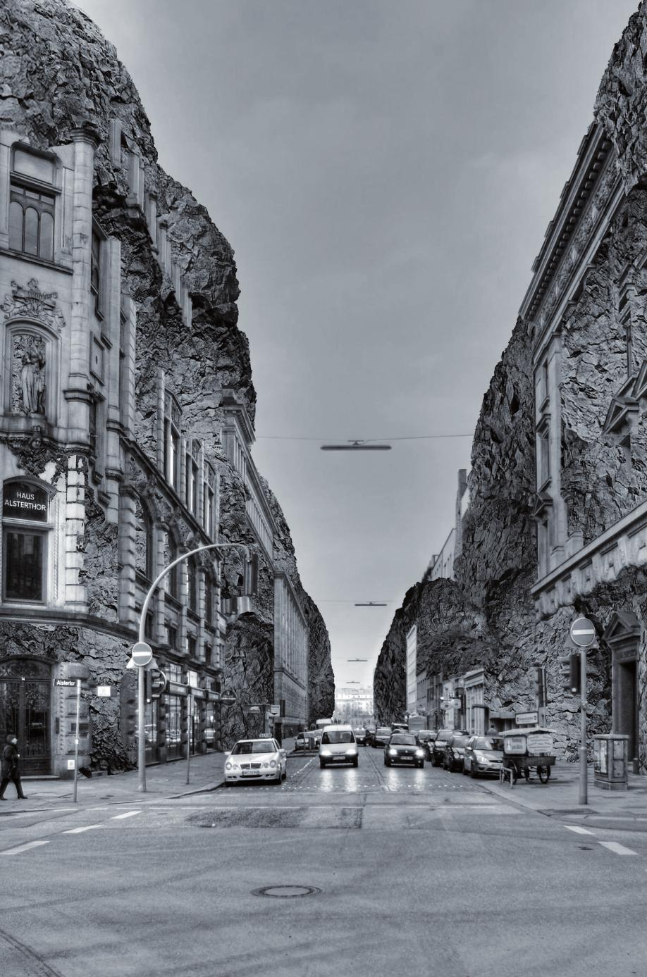 Lewis Caroll’s famous novel ‘Alice in Wonderland’ follows a little girl a white rabbit in a fictional world of the paradox and the absurd. After Model of transformative image compositions by Filip Dujardin, Philipp Schaerer, Paul Hollingworth or Laura S. Kicey, either Architectural and Interior design collages of utopian archi- tecture. The works are in a multimedia format process emerged. These were the work tools Hand sketch or geometric drawings and your own photographs together play with Adobe Photoshop or equivalent suitable alternatives. This resulted in collages that are both solitary buildings, urban or agricultural landscapes and interiors represent send.